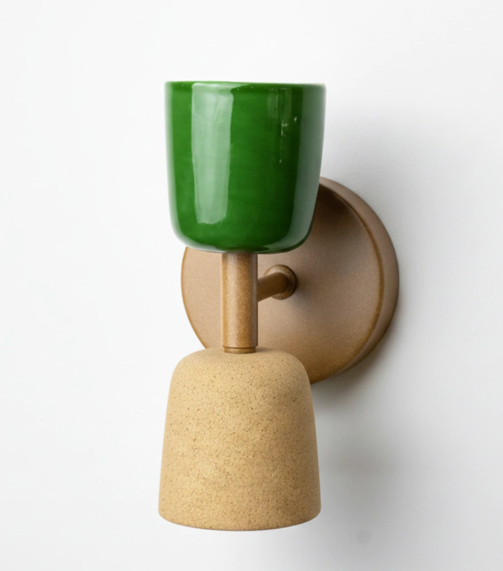 Essa luminária é composta de duas peças de cerâmica e mais uma estrutura e canopla em alumínio. São 6 diferentes combinações de cores pra você escolher: areia-areia, areia-verde, areia-azul, azul-azul, azul-verde e verde-verde (verifique demais cores disponíveis no site). Ela vai acompanhada de um kit de buchas e parafusos para fixação na parede. Você também tem a opção de adquirir a lâmpada especificada (Lâmpada LED MR11 Gu10 3000K 4W Bivolt) e receber junto da sua luminária.