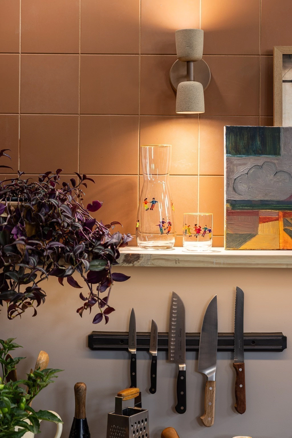 A luminária arandela Candeia faz parte da coleção Romaria, foi desenvolvida por Raísa Anderson, criativa da marca, e produzida por paceiros do interior de São Paulo.