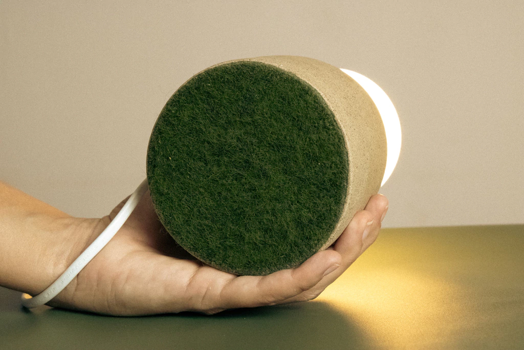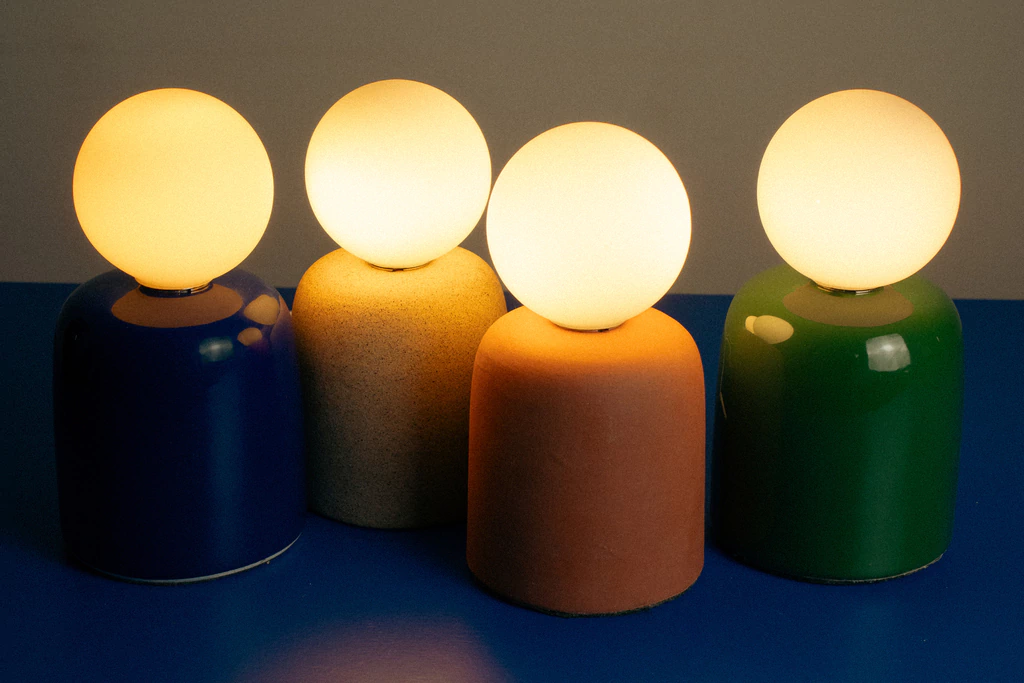 Essa luminária tem 4 opções de cor: areia, terracota, azul e verde.
