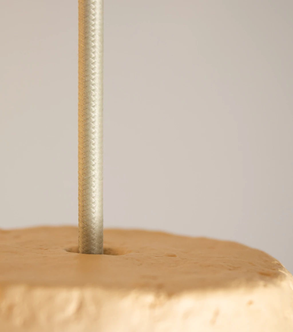Esta luminária vem acompanhada de um fio de 2 metros revestido em tecido na cor bege, canopla na cor bege, soquete e27 e kit para instalação.
